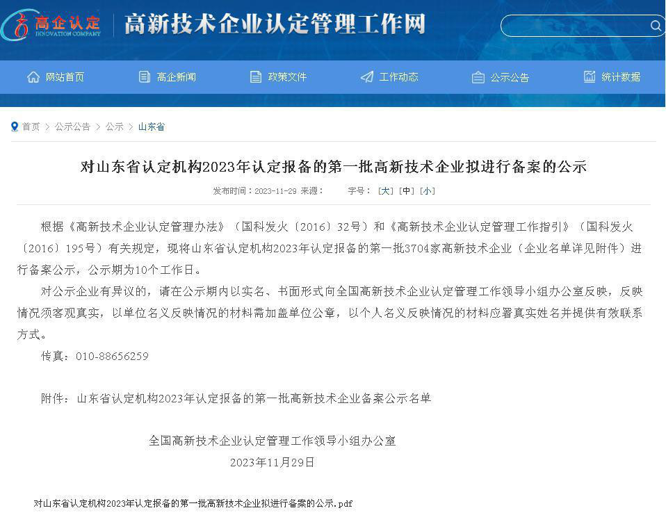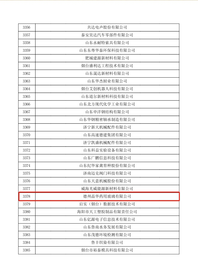 2023年11月29日,全國高新技術(shù)企業(yè)認定管理工作領(lǐng)導小組辦公室發(fā)出《對山東省認定機構2023年認定報備的第一批高新技術(shù)企業(yè)擬進(jìn)行備案的公示》,德州晶華藥用玻璃有限公司取得復審認定后的高新技術(shù)企業(yè)。