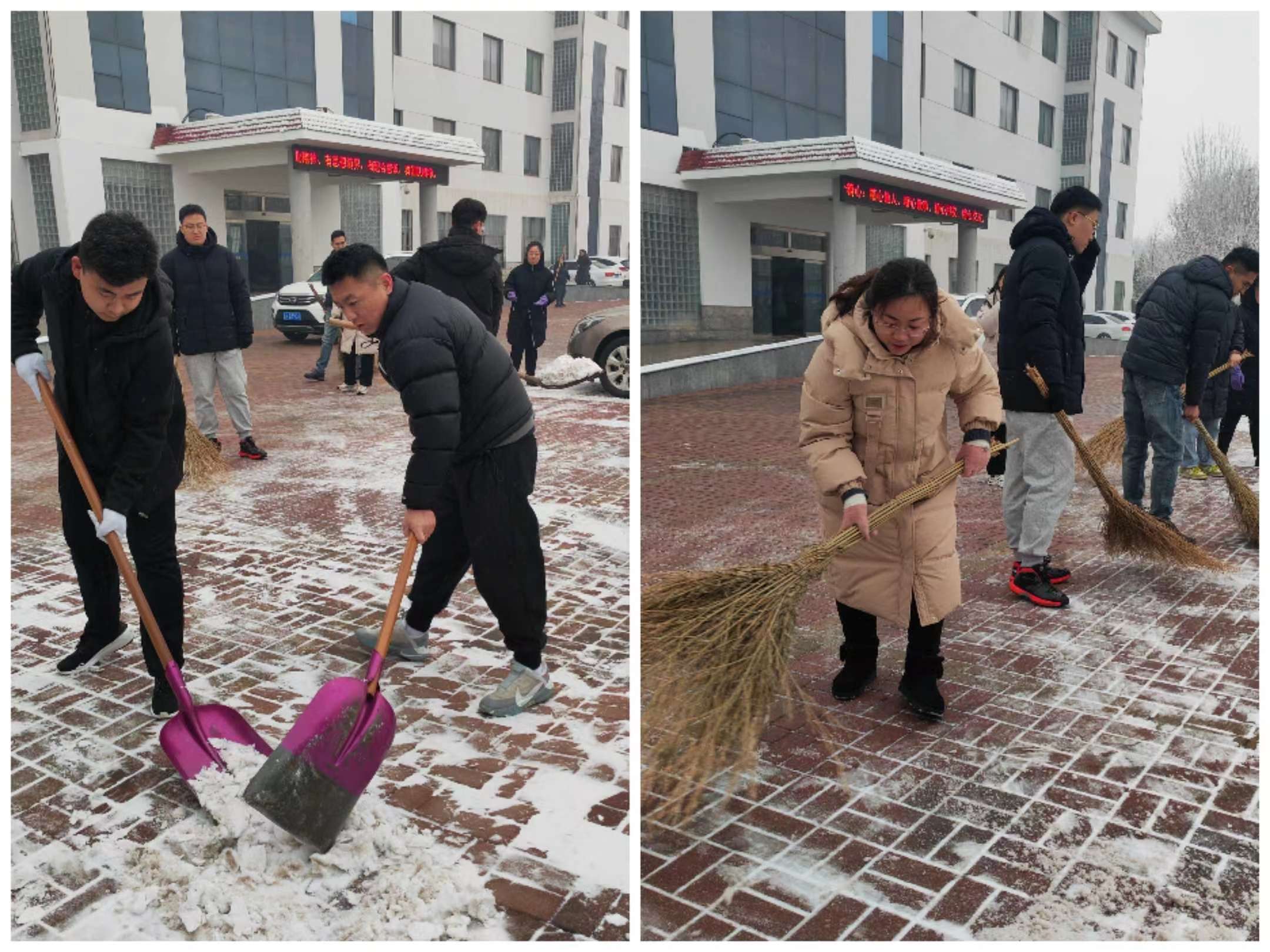 期間,各部門(mén)組織積極,人員迅速,分成小組對公司大院主干道的冰雪進(jìn)行了清掃。